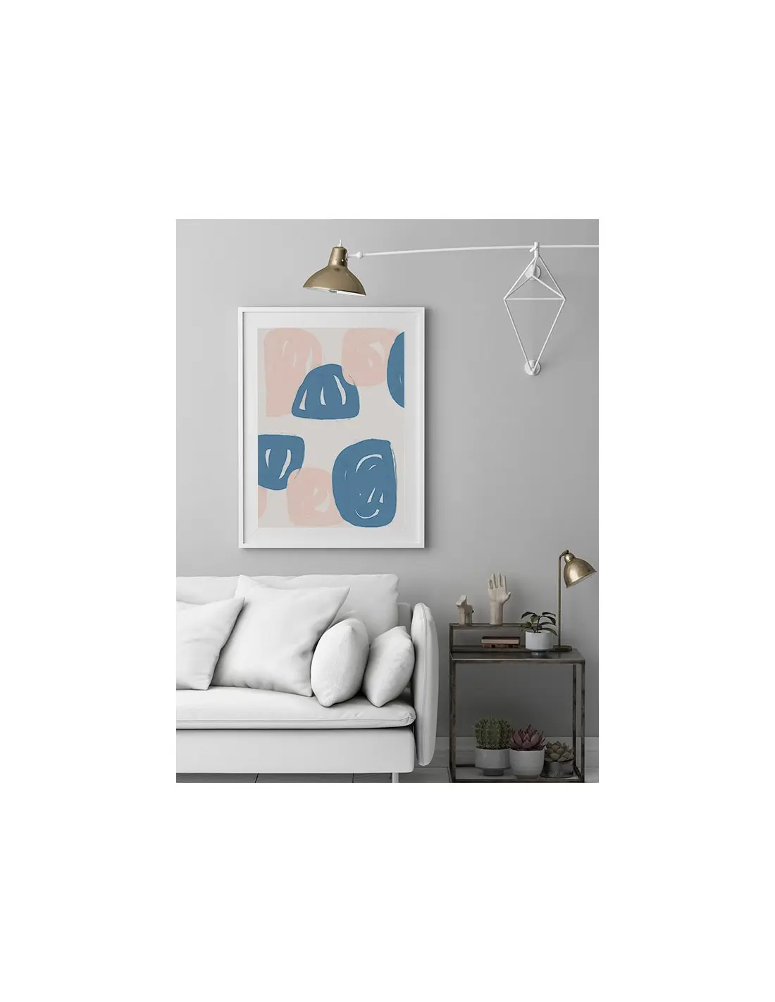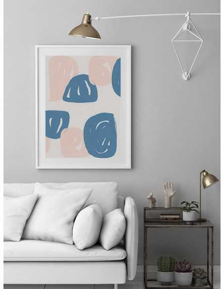 Scandinavian poster - Abstract paint with blue circles and triangles