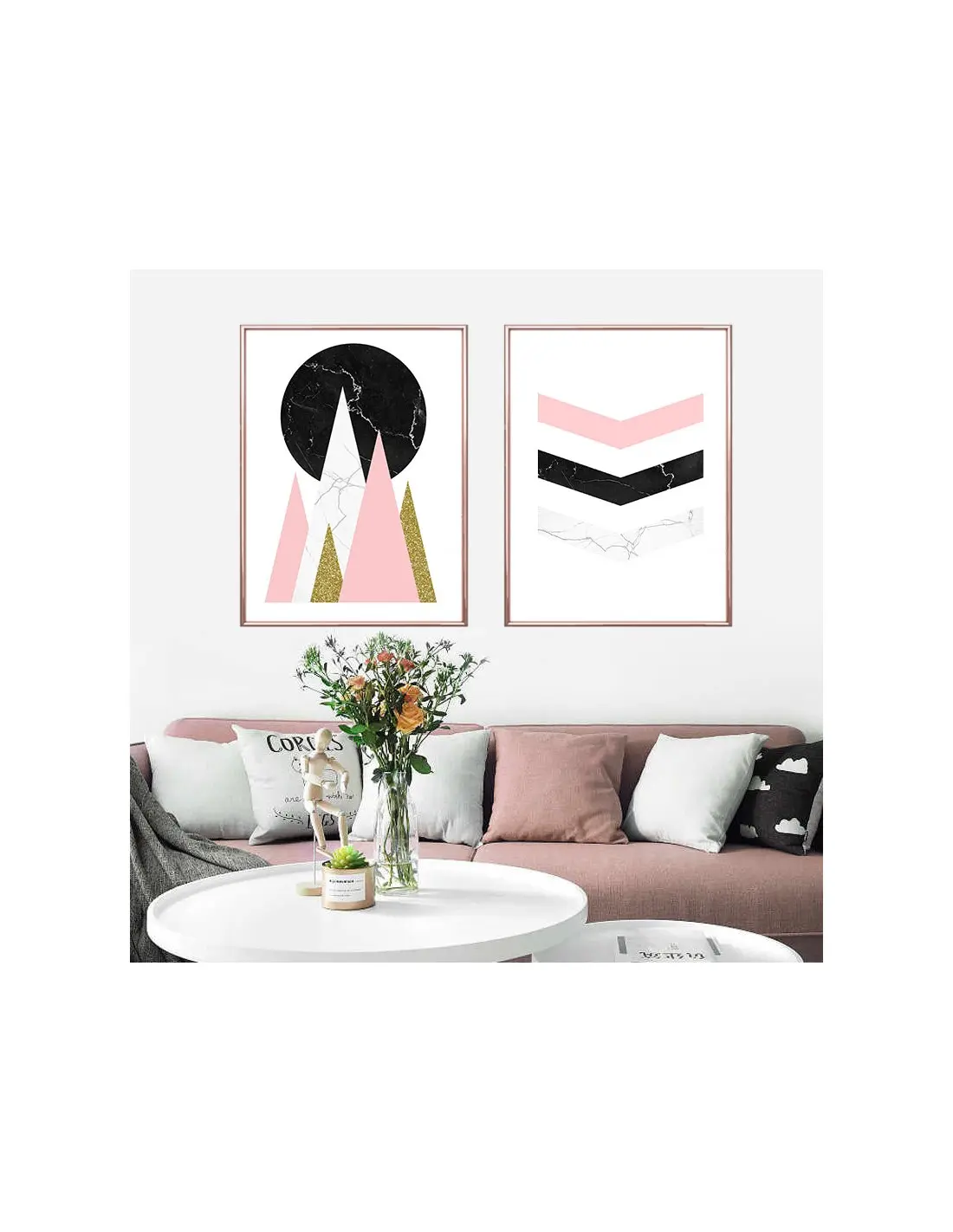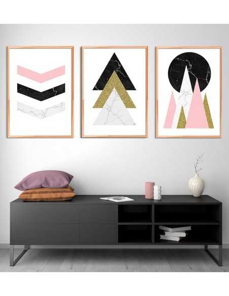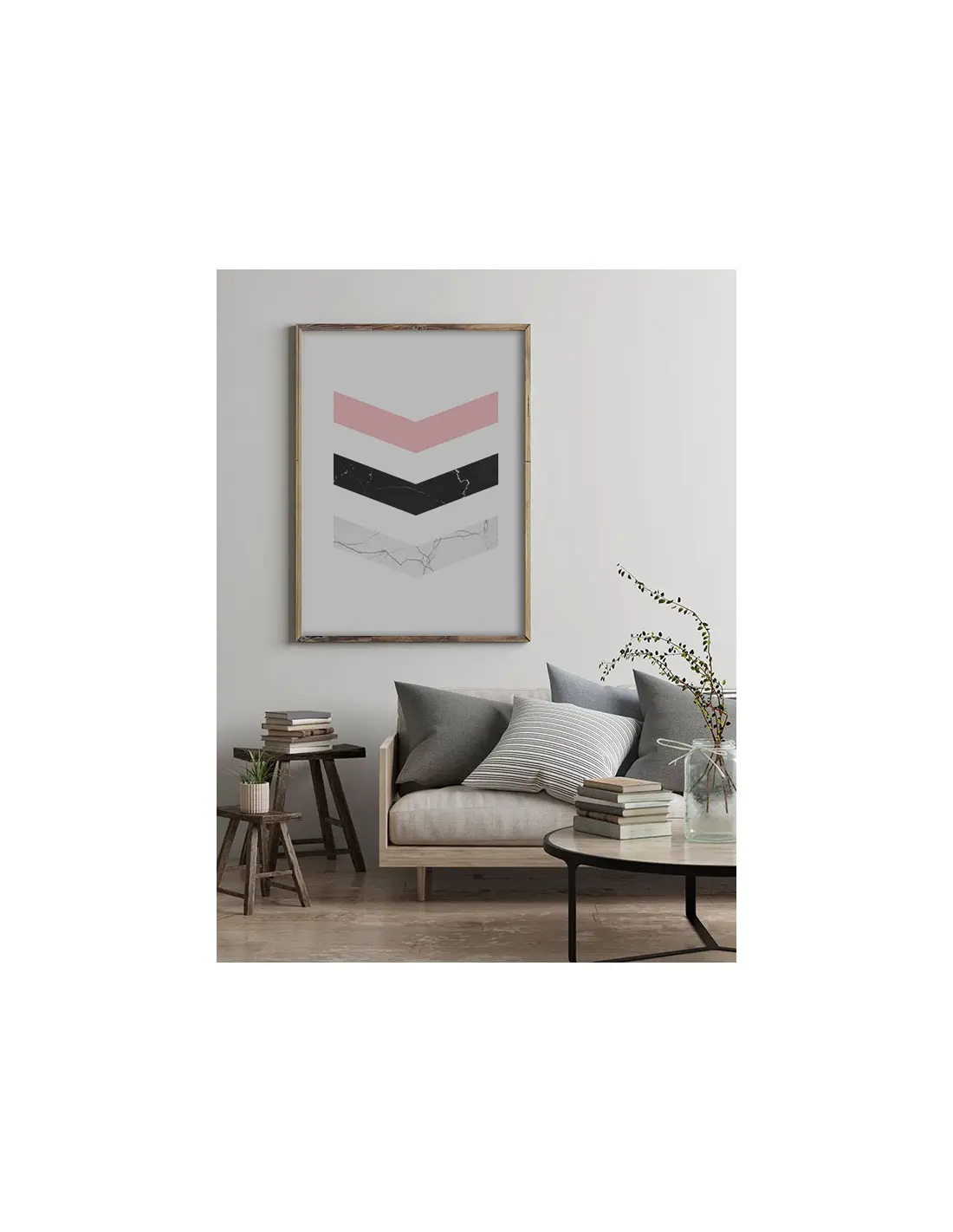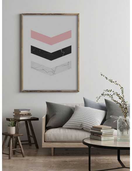 Geometric poster, wall graphics in a modern Scandinavian style. The image consists of arrows, decorated with marble.