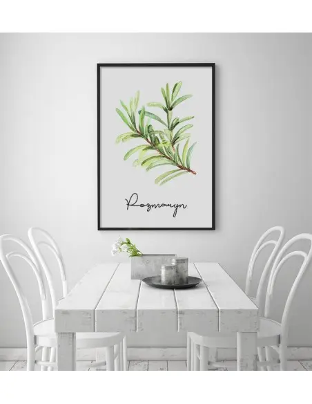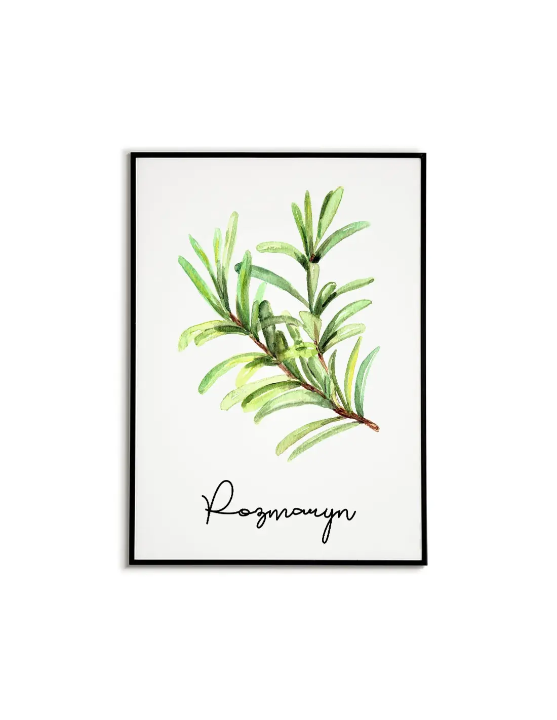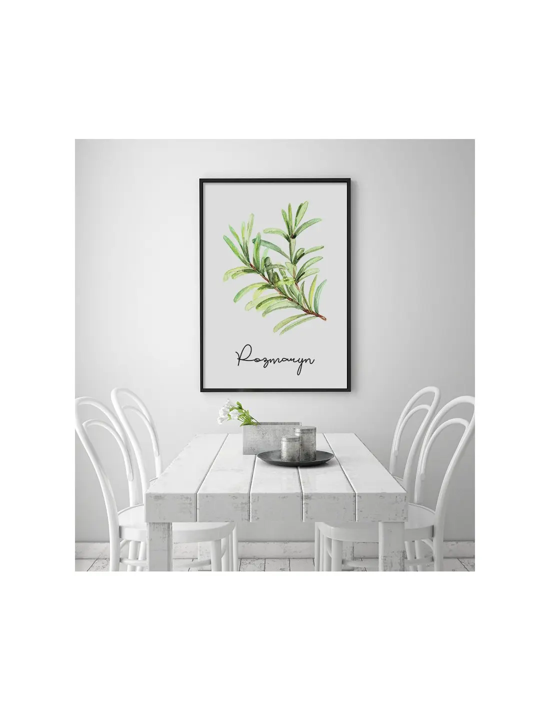 Modern kitchen poster with rosemary. The poster comes from our herbal poster collection. The poster has a beautiful graphic of Rosemary with the name of the herb. Such decoration will definitely change your kitchen.