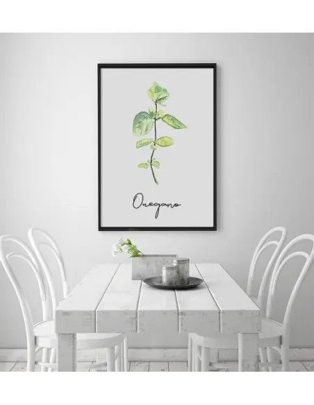 A modern kitchen poster with Oregano. The poster comes from our herbal poster collection. The poster features a beautiful artwork of Oregano along with the name of the herb. Such decoration will definitely change your kitchen.