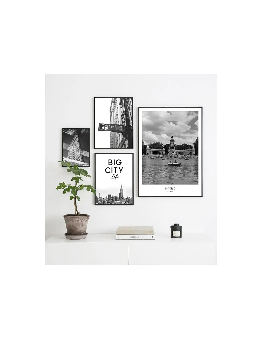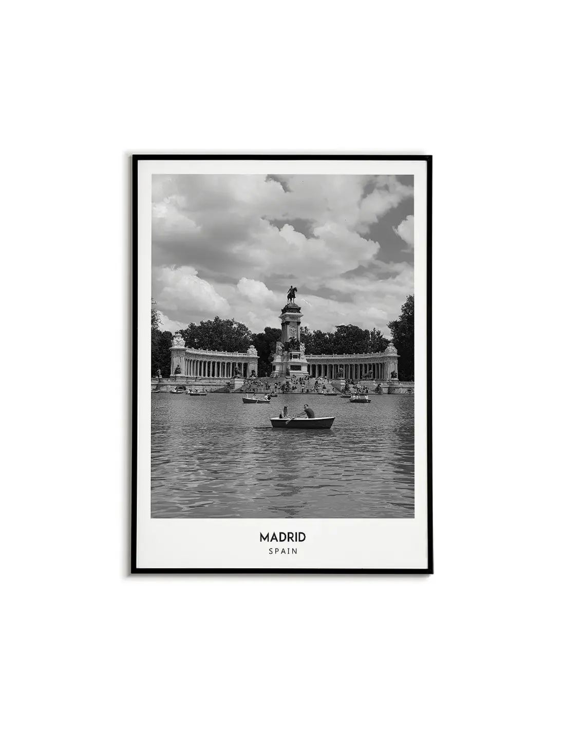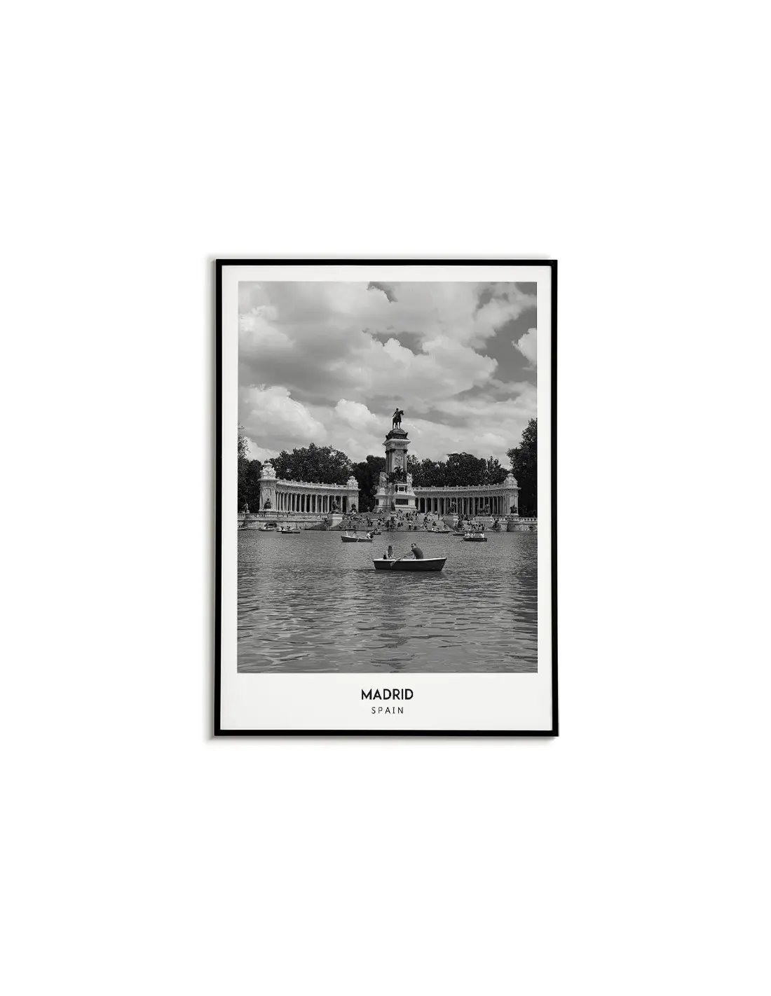 Poster with the city of Madrid in Spain, Artwork No. 8 on the wall painting. black and white photo on the wall.