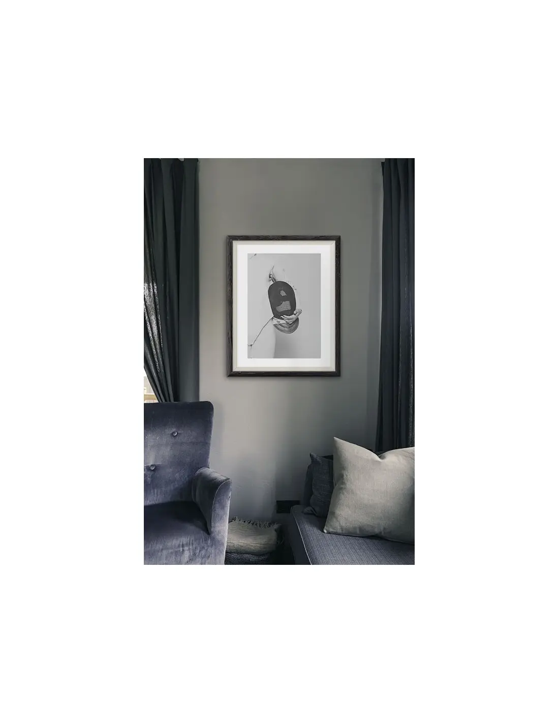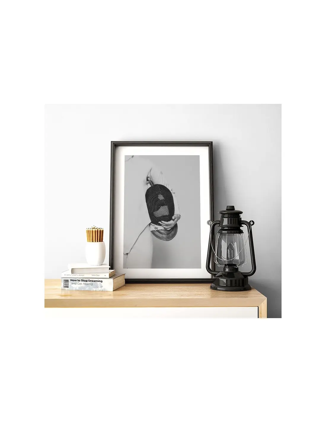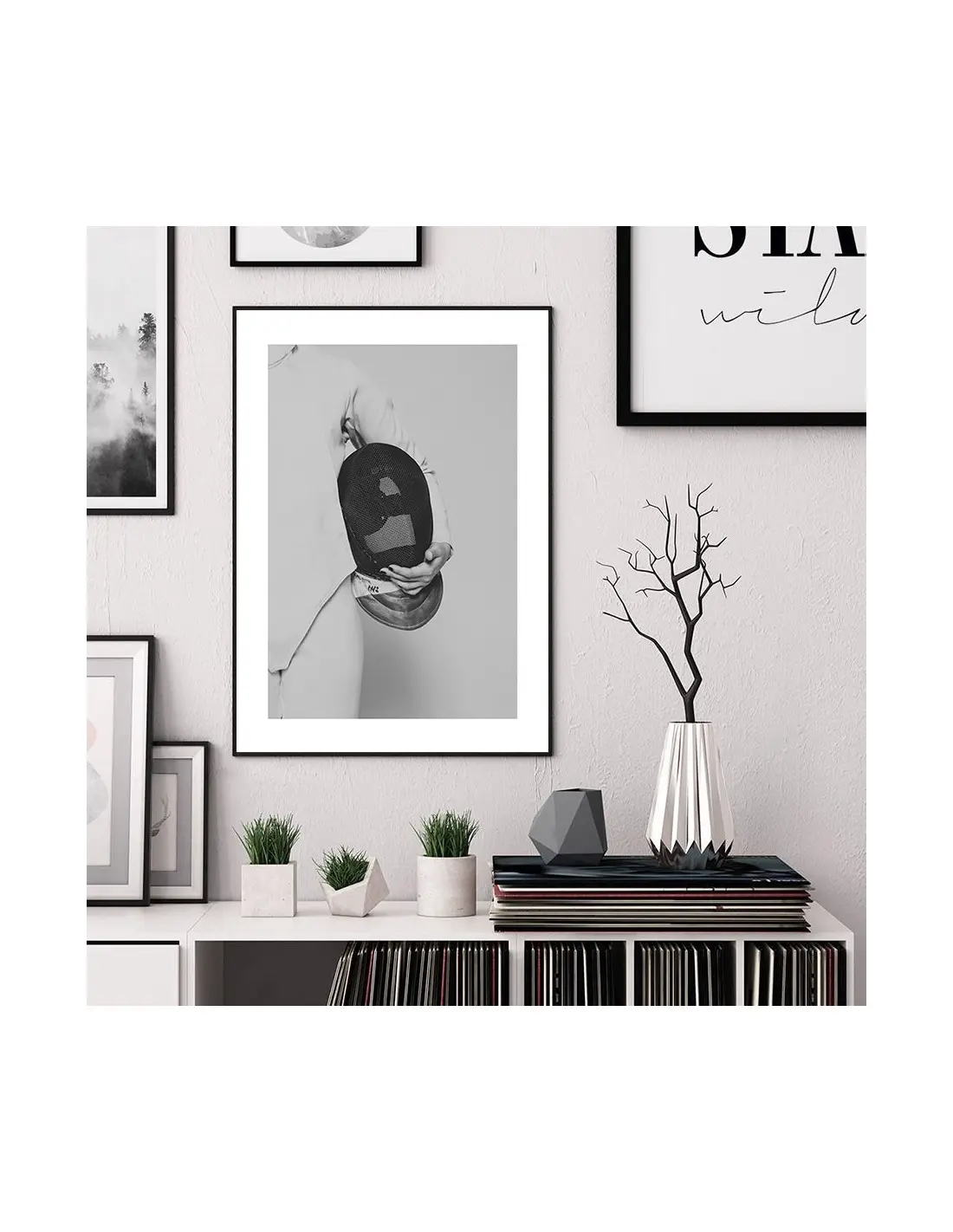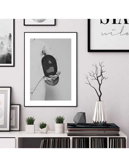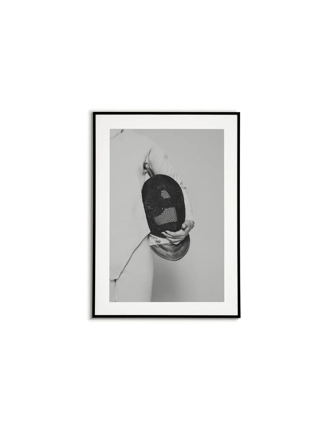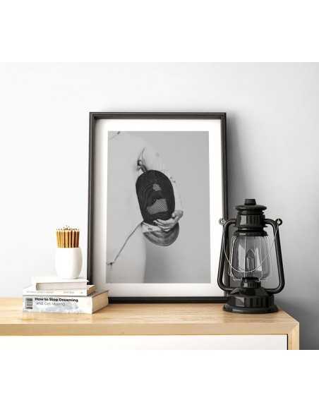 Swordsman poster. A beautiful black and white poster with a swordsman holding a mask. Made in black and white, it adapts perfectly to any type of wall.