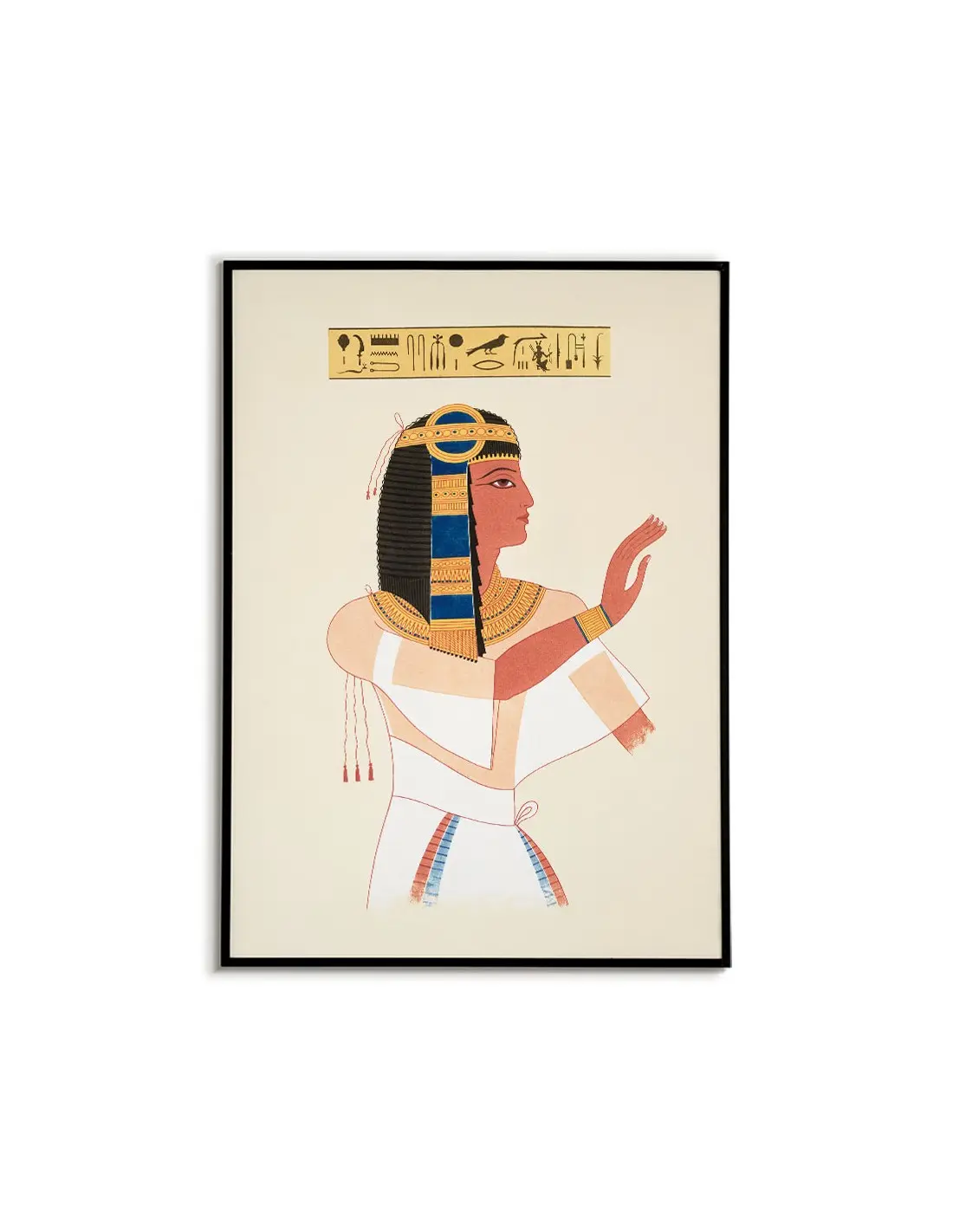 Poster with the motif of Ancient Egypt. The graphics include a portrait and hieroglyphs. Graphics ideal for the bedroom or living room.