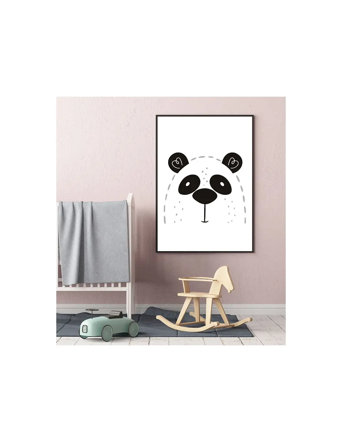 A poster for a child with a panda designed in a modern style, perfect for a child's room.