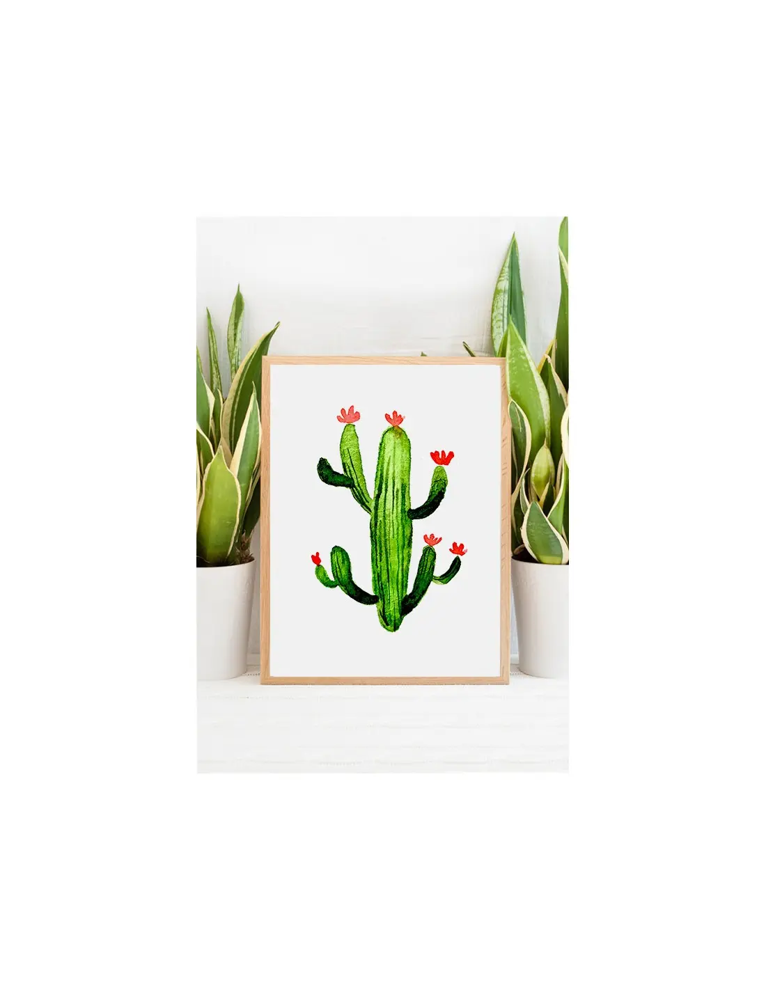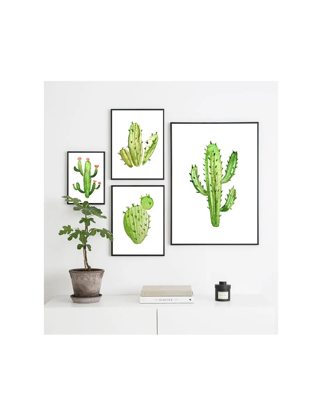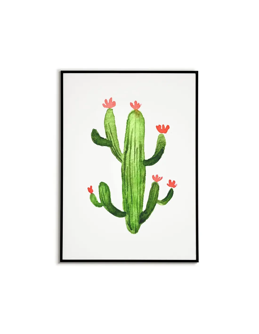 Cactus poster. Artwork on the wall with a painted plant, green on a white background. Beautiful, simple and modern Scandinavian style perfect for any wall.