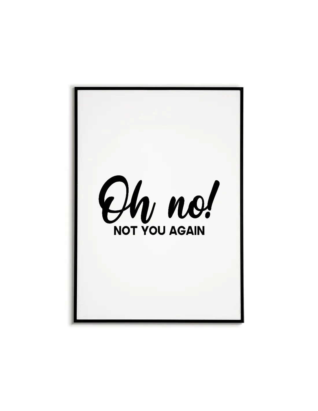 A modern poster, typographic graphics with the words "Oh no not you again". The poster is perfect for a corridor or hall.