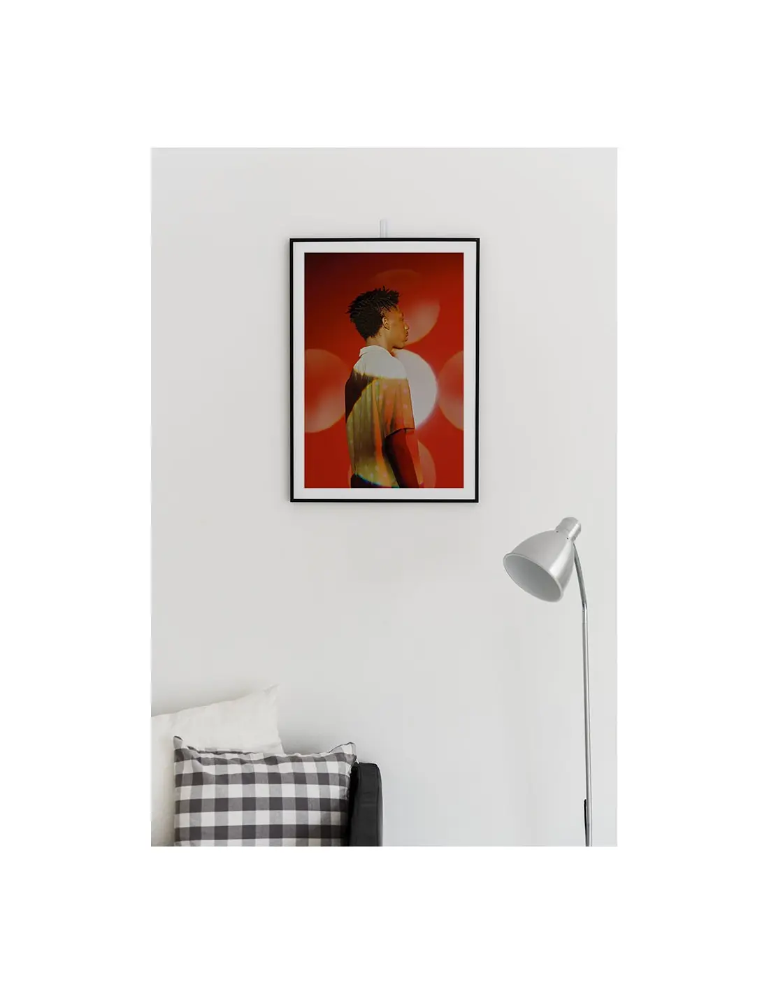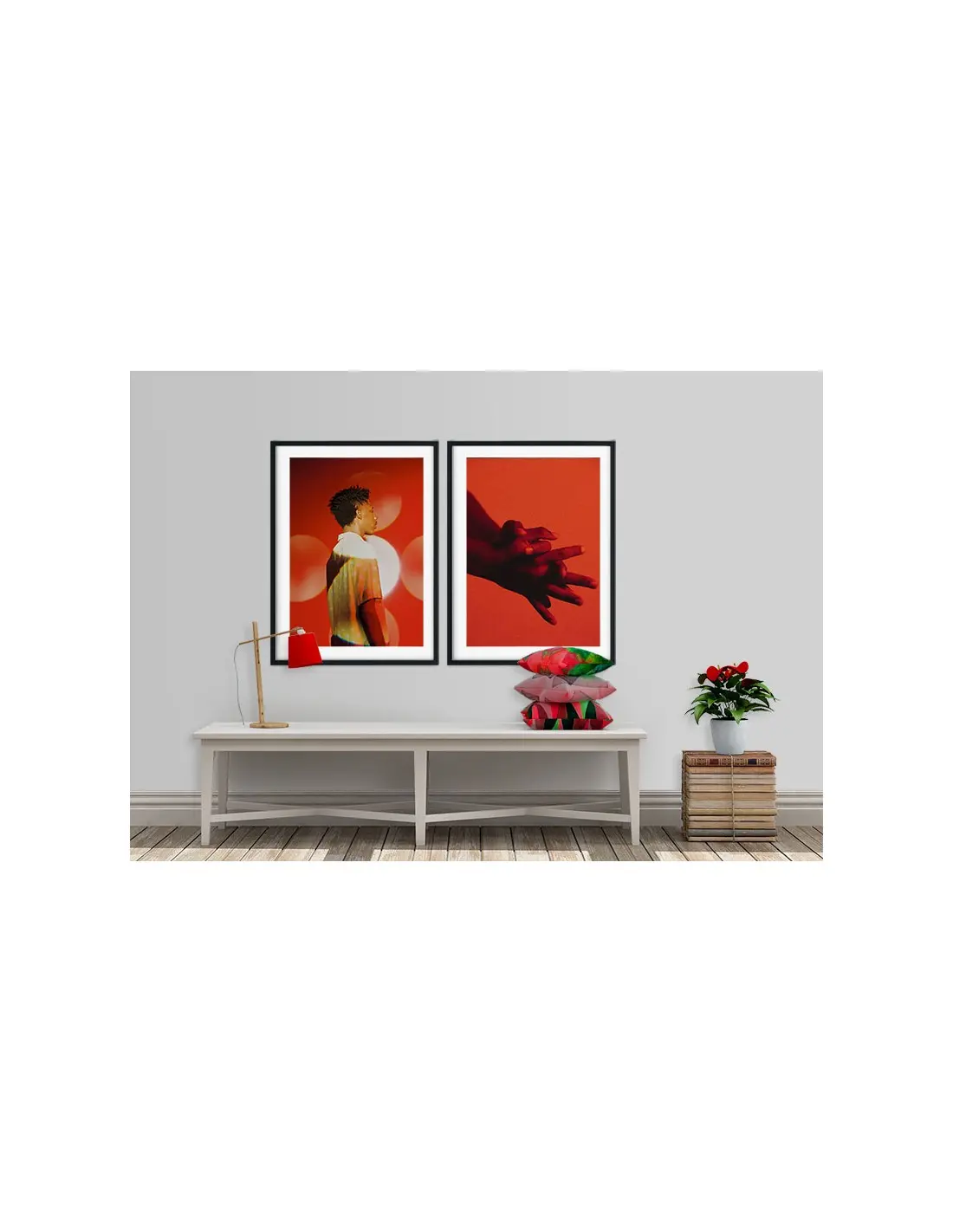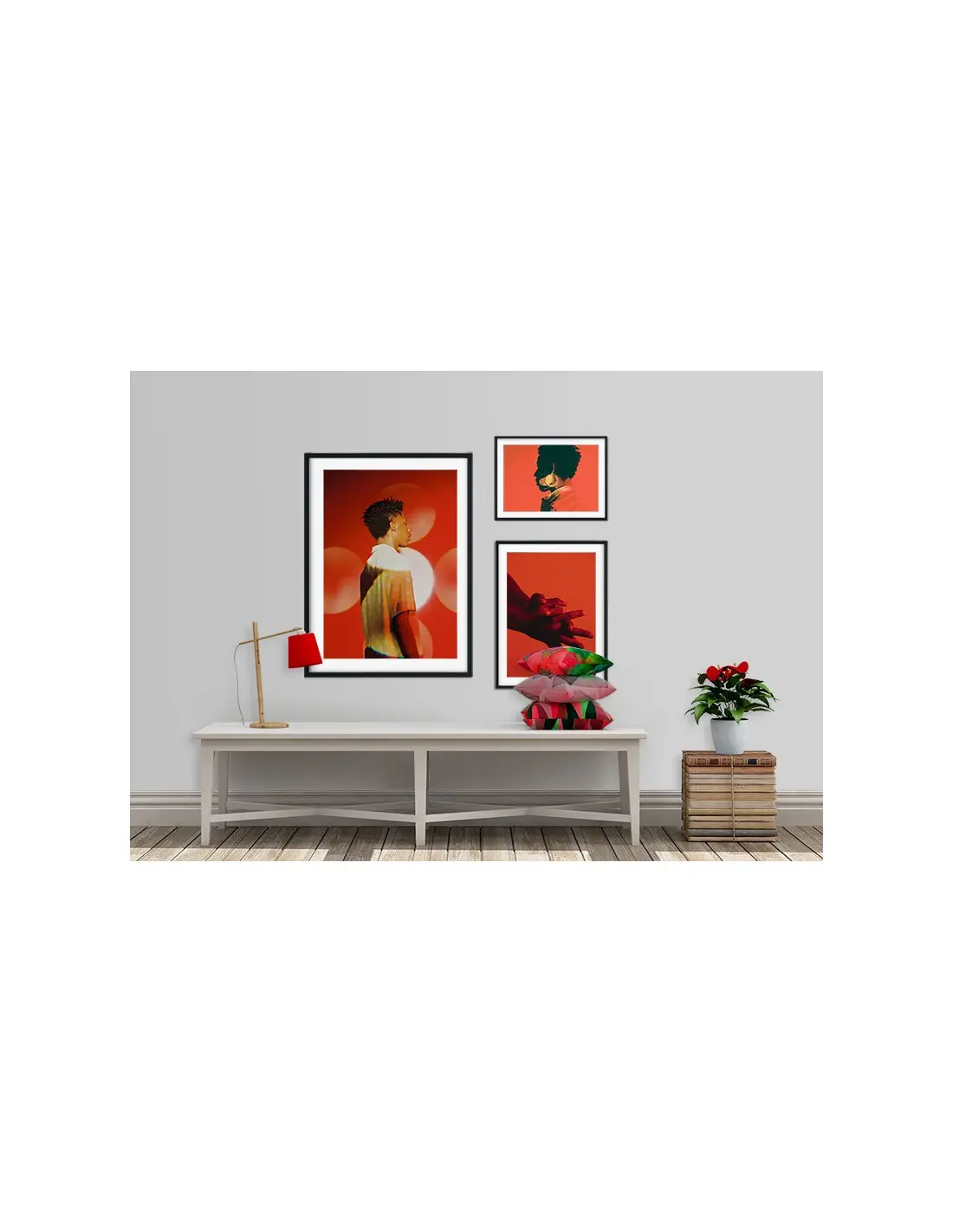 Plakat wykonany w modnym, nowoczesnym stylu.Fotografia z silną przewagą koloru czerwonego. pochodzi z zestawu "My Identity"