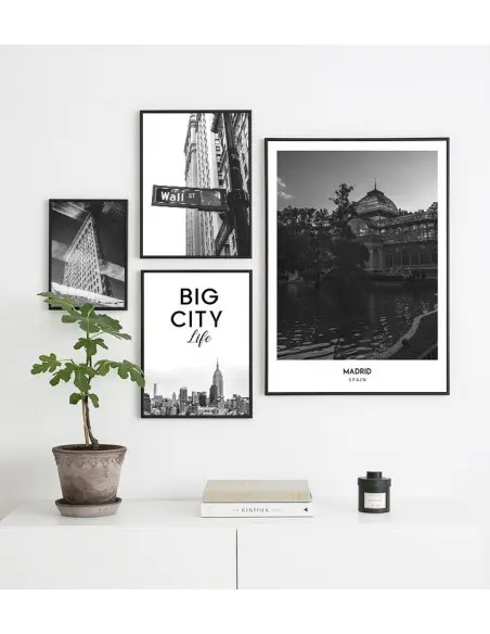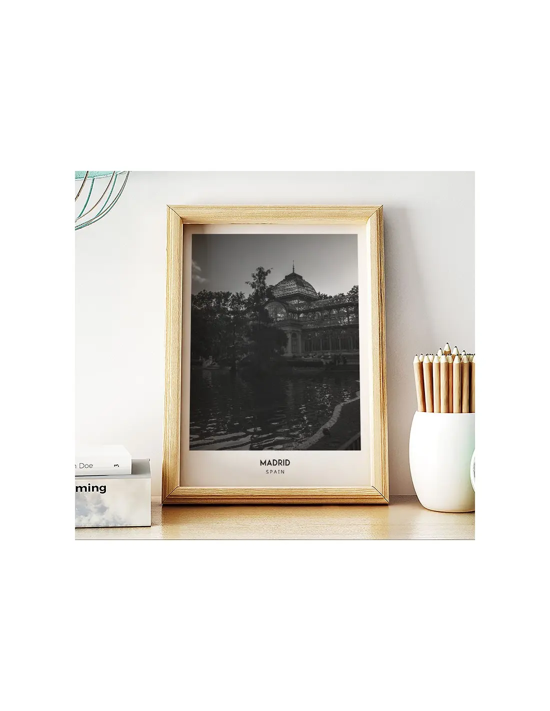 Piękny grafika na ścianę ze zdjęciem miasta Madryt w Hiszpanii . Na grafice widać piękne ujęcie miasta wykonane w czerni i bieli. Na plakacie znajduje się również napis z nazwą miasta w języku Angielskim.