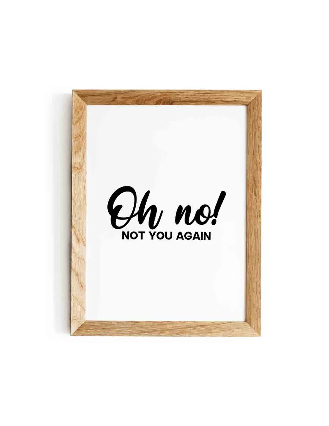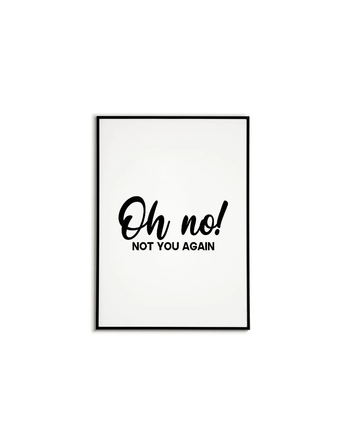 Nowoczesny plakat, grafika typograficzny z napisem "Oh no not you again" (tł. O nie, to znowu ty) plakat idealnie nadaje się na korytarz lub przedpokój.